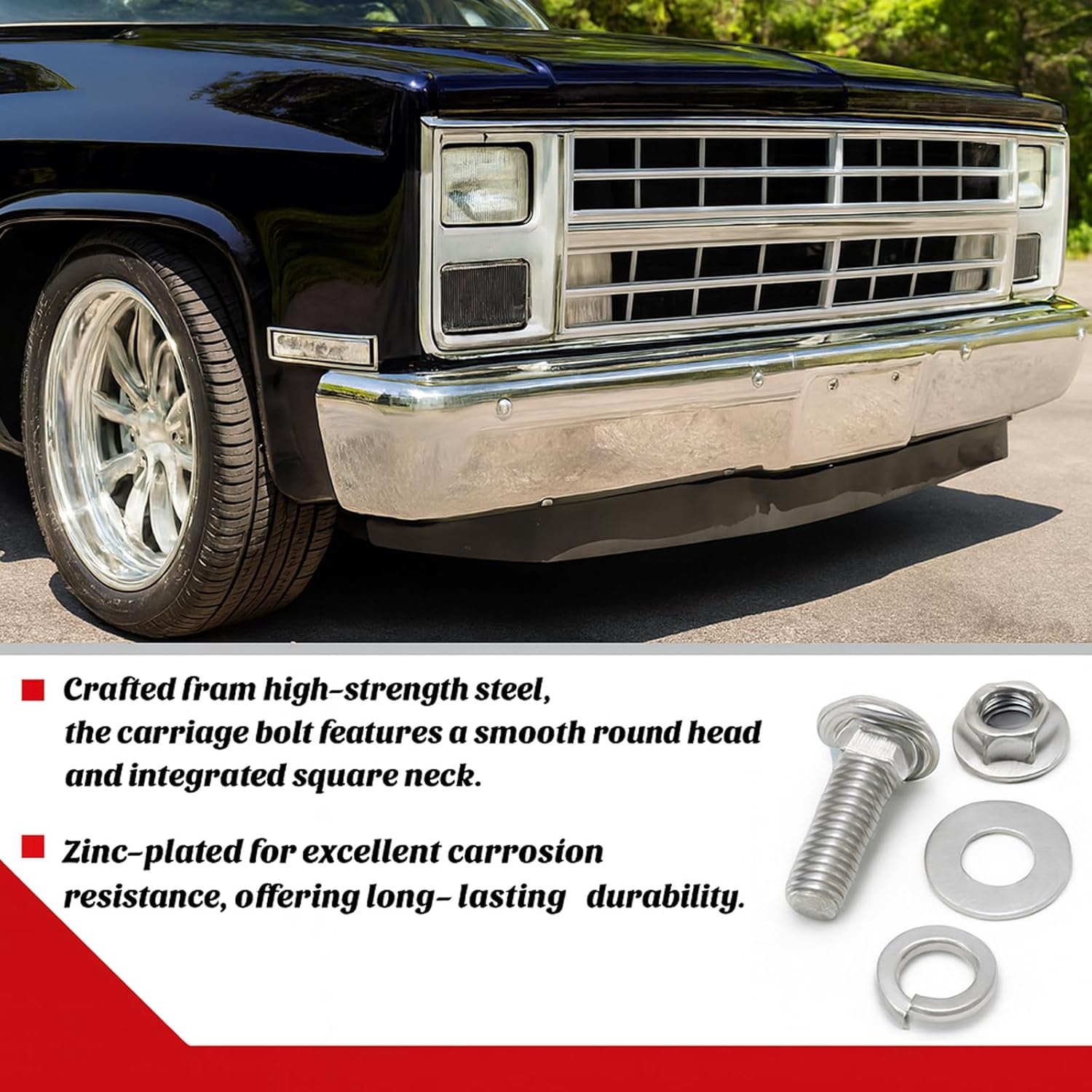 32 Pcs Stainless Steel Bumper Bolt Kit 1947-87 Chevy & GMC Pickup Trucks Application Guide: 1947-1955 1st Series Pickups 1947-55 1st Series Front Bumper = 5 bolts. 1947-53 Rear Bumper = 5 bolts. 1954-55 1st Series Rear Bumper = 4 bolts. 1955-1959 Pickups 1955 2nd Series-59 Front Bumper = 6 bolts. 1955 2nd Series-59 Rear Bumpers = 4 bolts. 1960-1966 Pickups 1960-66 Front Bumper = 6 bolts. 1960-66 Rear Bumper = 4 bolts. 1967-1972 Pickups 1967-72 Front Bumper = 6 bolts. 1967-72 Rear Bumper = 4 bolts. 1973-1987 Pickups 1973-80 Front Bumper = 6 bolts. 1981-87 Front Bumper = 8 bolts. 1973-87 Rear Bumper = 8 bolts.