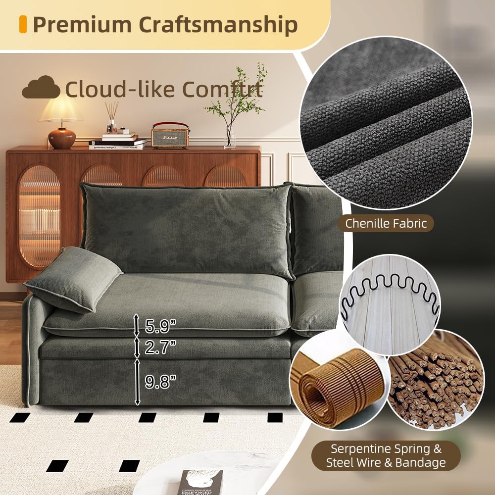 Whether you want a cozy spot to lounge with family for movie nights, or need extra sleeping space when friends stay over, this 3-in-1 convertible futon fits small apartments, studios, or dorms perfectly. No complicated steps: just lift the seat cushions, lower the support legs, pull the backrest forward, and unzip to expand it, turning the loveseat (for 2-3 people) into a twin sleeper or roomy king bed in minutes. Chic beige fits living rooms/offices--ideal for daily use, guest beds, or tiny spaces. Product Name: 3 in 1 Convertible Sleeper Sofa Bed Color: Beige / Dark Grey Upholstery Material: Chenille Cushion filling material: Cotton Pillows Included: Yes, 2 Pillows Removable Backrest: Yes Removable Backrest Cover: Yes Removable Cushion: Yes Removable Cushion Cover: Yes Assembly Required: Yes Country of Origin: China Sofa Size: 39.4''W x 81.1''L x 42.1''H Sleeper Size: 78.7''W x 75.6’’L x 18.5''H Seat Height- Floor to Seat: 18.5'' Arm Height - Floor to Arm: 22'' Overall Weight: 164.25 lbs Weight Capacity: 301lbs / seat