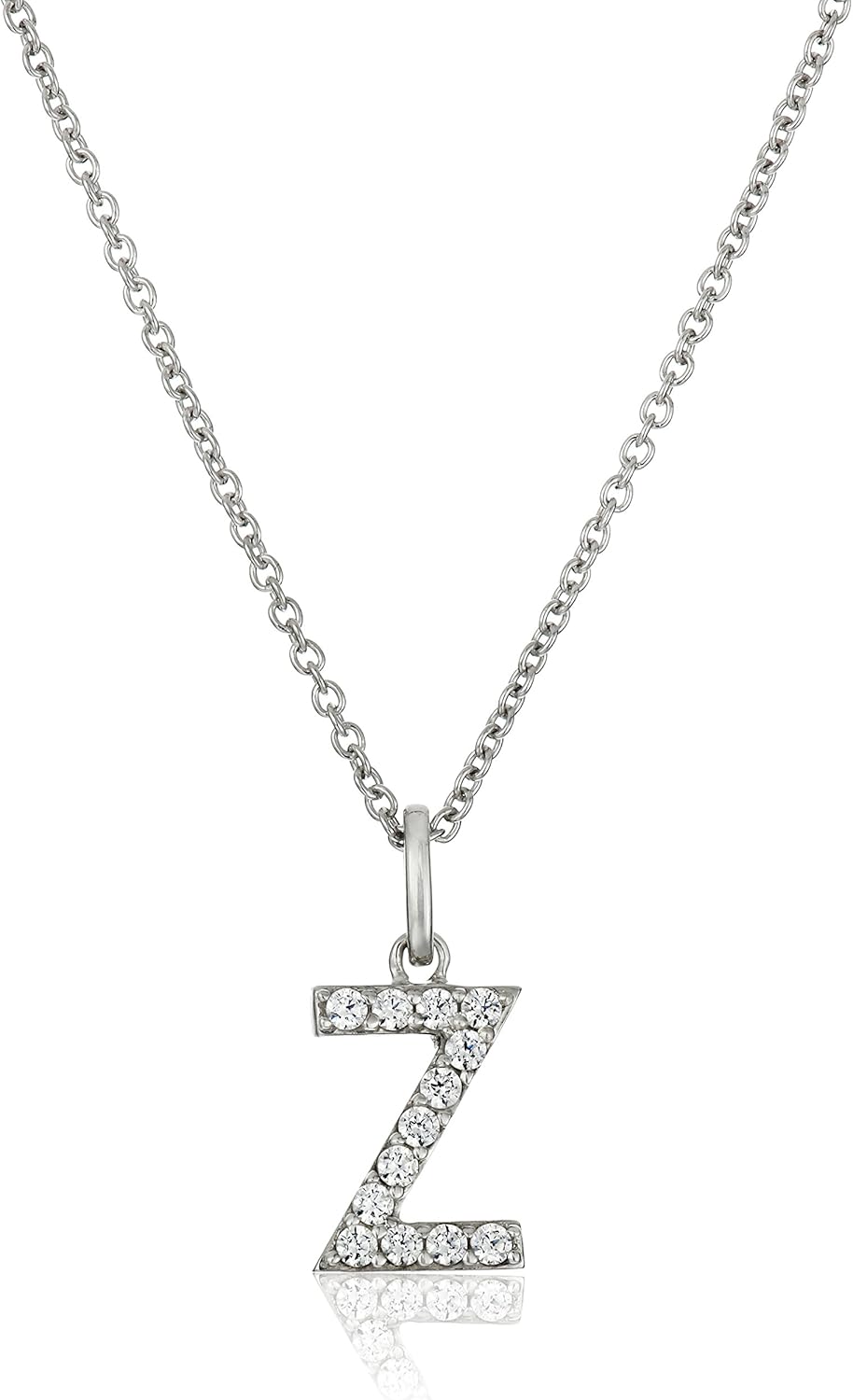 Amazon Essentials Platinum Plated Sterling Silver Infinite Elements Cubic Zirconia Initial Pendant Necklace, (previously Amazon Collection)