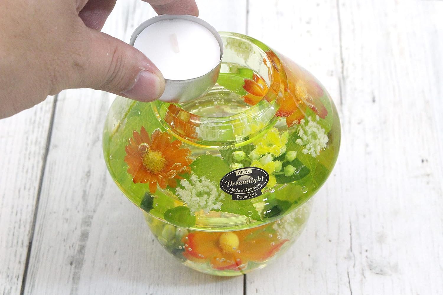 Dream Light is a German candle holder brand that is popular in more than 60 countries around the world. Not only is it a candle holder for you to enjoy the light and fragrance, but also a great decoration for your room. Each piece is hand-made to create a natural look. Orchid Diamond. This is a series of glittering diamonds that shine in the rose pink orchid. The mouthblown glass vessel features a fresh design with colorful flower motifs and beads enclosed in gel.