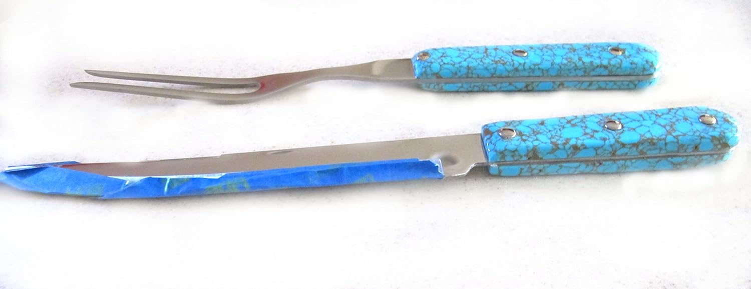 Southwestern Carving Set (Knife & Fork) with Turquoise Handles